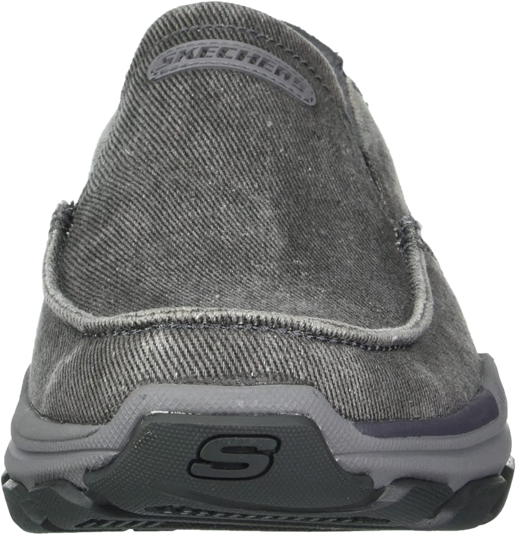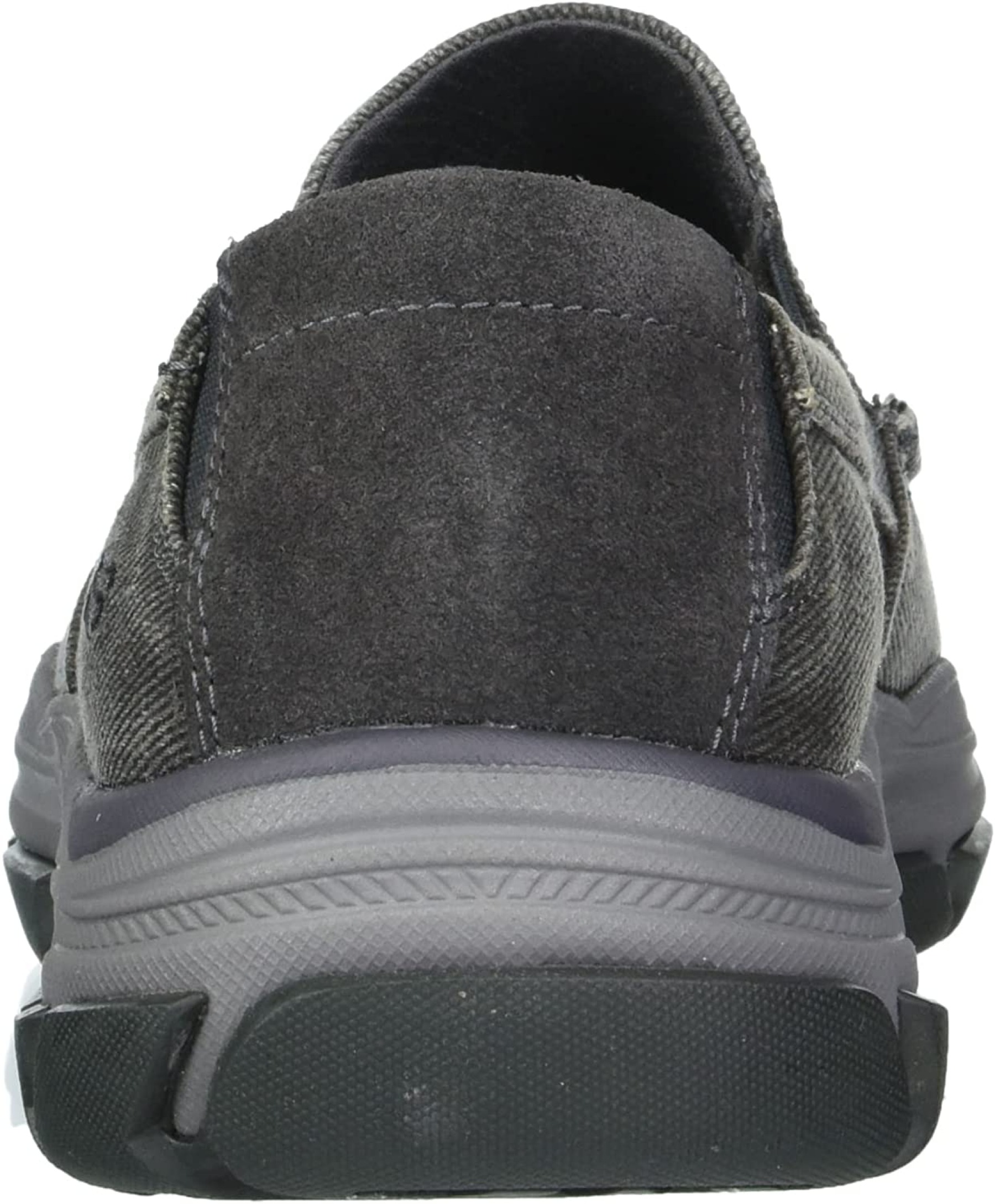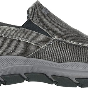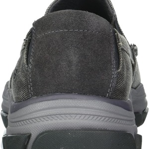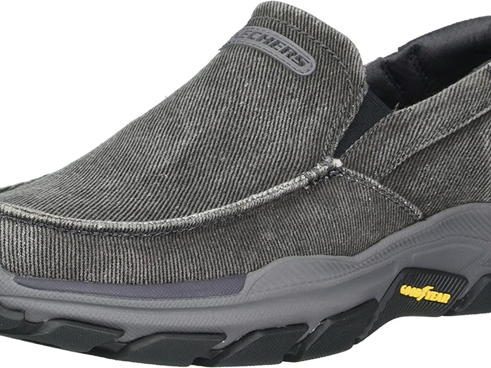 Add comfort and versatile style easily with Skechers Relaxed Fit®: Respected - Melbert. This slip-on casual moc toe loafer features a canvas and soft suede upper with a Skechers Air-Cooled Memory Foam® insole and durable Goodyear® Performance Outsole.