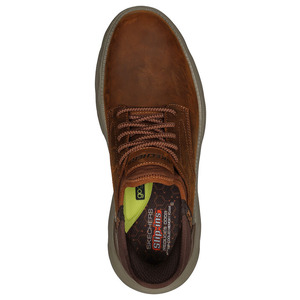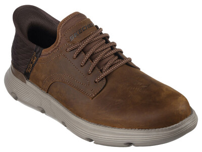 Master your efficiency with a comfortable business casual look wearing Skechers Hands Free Slip-ins®: Garza - Gervin. This TOUCHLESS FIT® Oxford style features a smooth leather upper with stretch laces, a Skechers Slip-ins® molded heel panel, a charcoal-infused Skechers Air-Cooled Memory Foam® insole, and a Skechers Goga Mat Arch™ for added support.