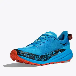 A grippy, responsive ride for technical terrain. There’s only one GOAT on the trail. And this is it. Combining HOKA’s tried and true cushioning with aggressive traction and ultralight materials, the Speedgoat 6 was born to tame the trail. A workhorse for technical terrain, this recent reissue was refined with a breathable woven textile upper, foot-hugging internal chassis, plusher dual gusset tongue, and revised lug orientation inspired by the hoof of a goat (what else?)
